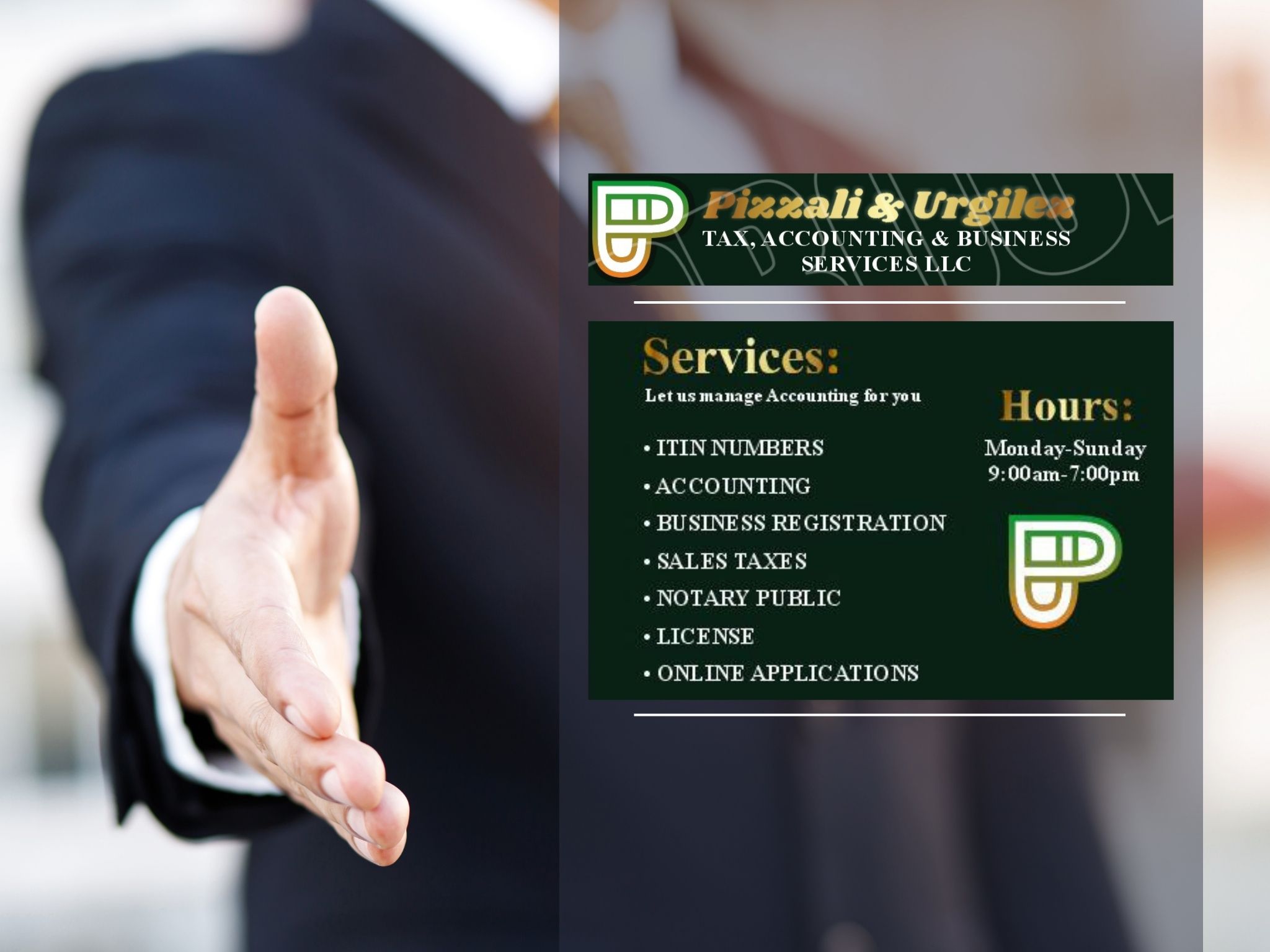 Let us manage accounting for you and more: Bussiness Registration, Sales Taxes, Notary Public, License, ITIN Numbers, Online Applications.